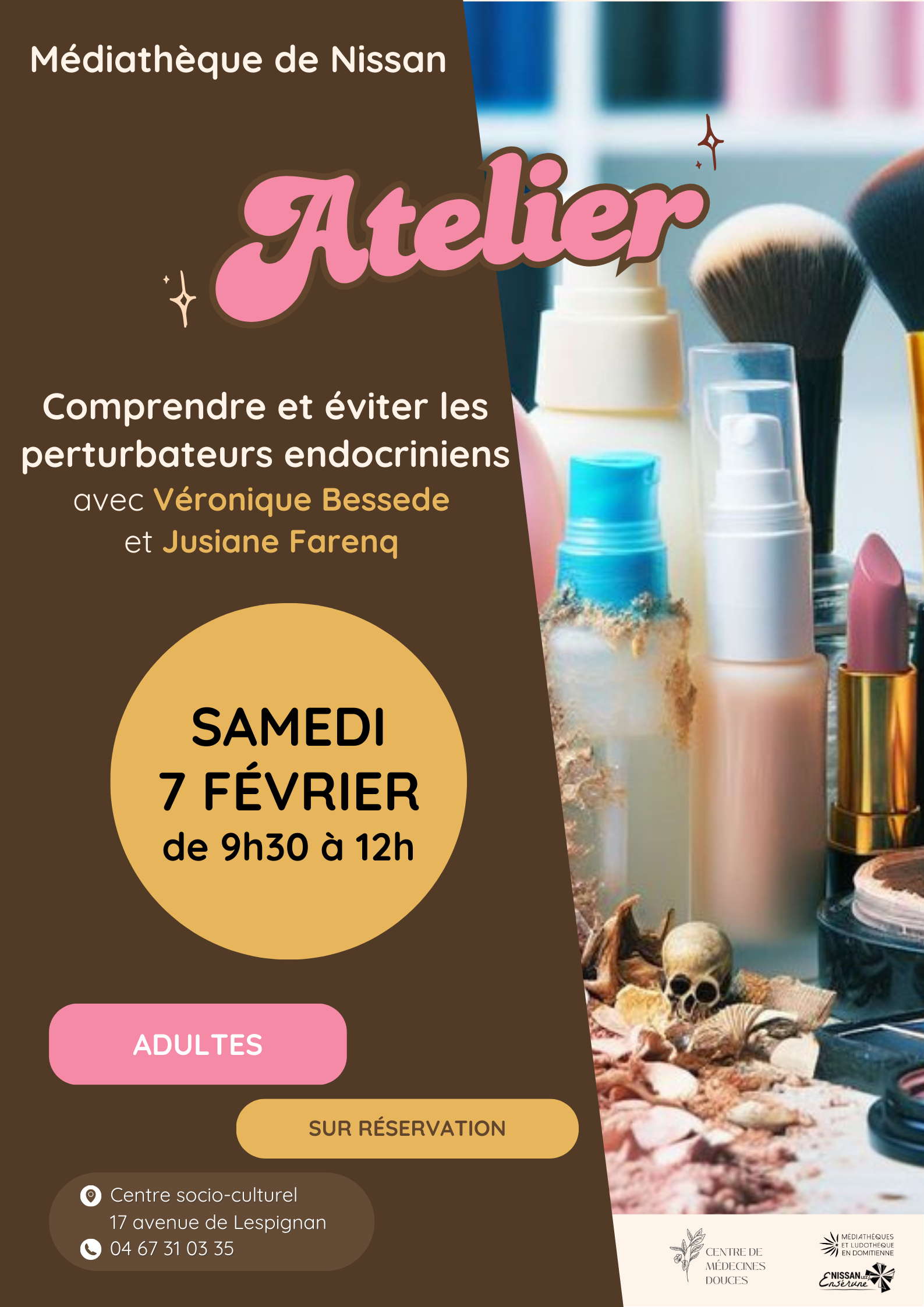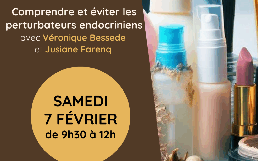 Atelier « Comprendre et éviter les perturbateurs endocriniens » Jan 22, 2026 Atelier « Comprendre et éviter les perturbateurs endocriniens » 74 74 people viewed this event. S’inscrire à l’évènement Pour s’inscrire à cet évènement, Veuillez vous rendre à l’URL suivante : → Date et heure 2026-02-07 à 2026-02-07 Lieu Médiathèque Partager avec des amis Facebook Twitter Linkedin Xing Pinterest