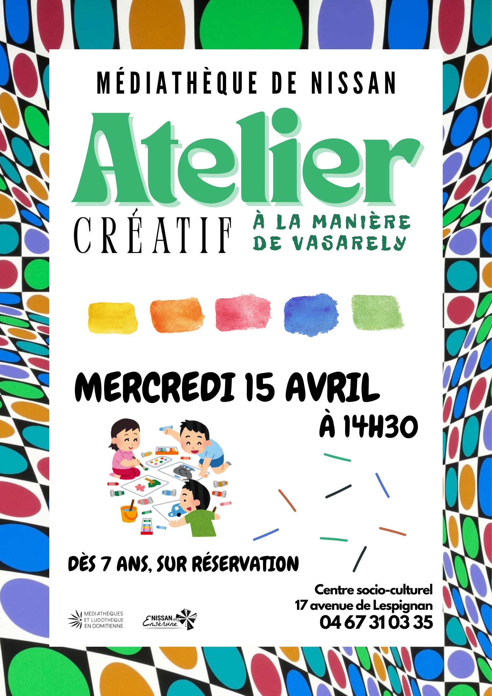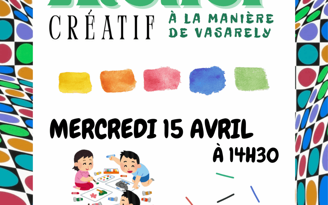 Atelier créatif à la manière de Vasarely Mar 11, 2026 Atelier créatif à la manière de Vasarely 48 48 people viewed this event. S’inscrire à l’évènement Pour s’inscrire à cet évènement, Veuillez vous rendre à l’URL suivante : → Date et heure 2026-04-15 à 2026-04-15 Lieu Médiathèque Partager avec des amis Facebook Twitter Linkedin Xing Pinterest