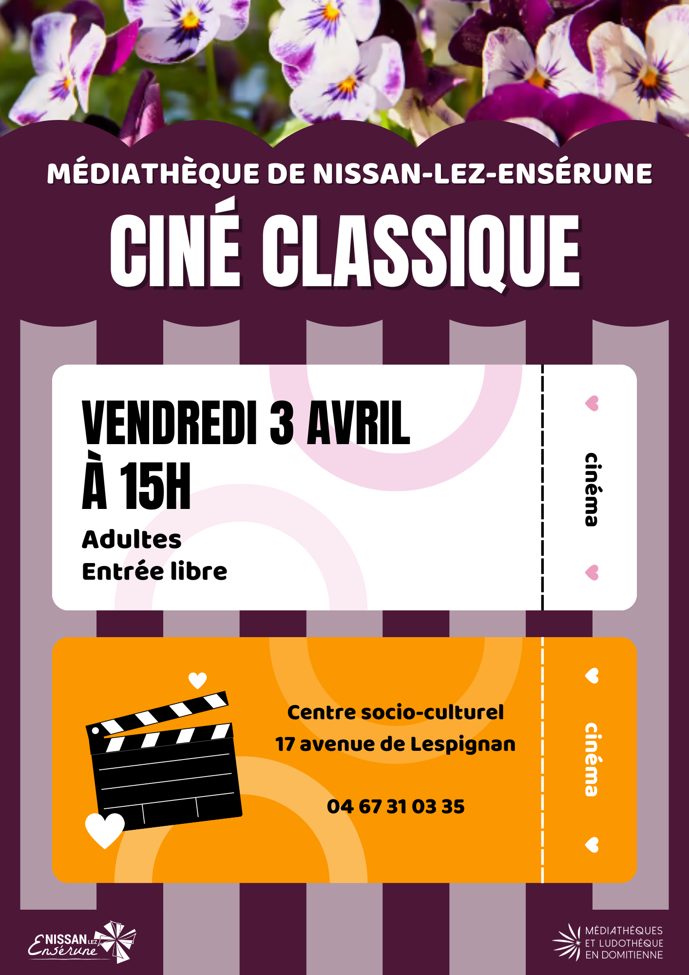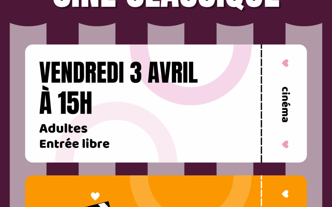 Ciné- classique Mar 11, 2026 Ciné- classique 17 17 people viewed this event. S’inscrire à l’évènement Pour s’inscrire à cet évènement, Veuillez vous rendre à l’URL suivante : → Date et heure 2026-04-03 à 2026-04-03 Lieu Médiathèque Partager avec des amis Facebook Twitter Linkedin Xing Pinterest