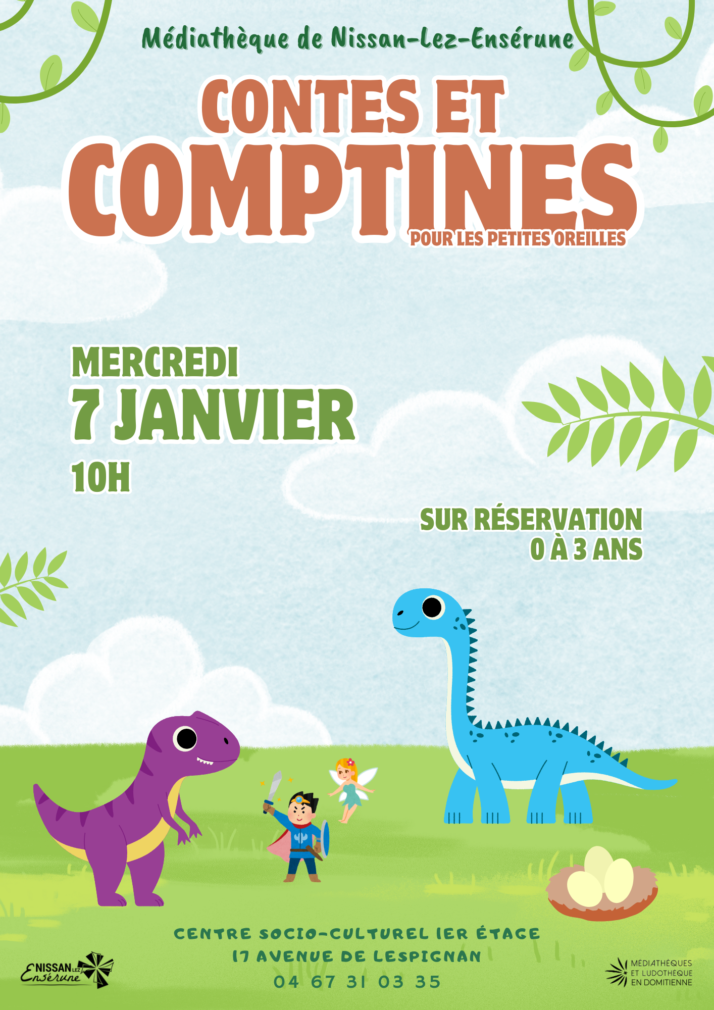 Contes & comptines Déc 18, 2025 Contes & comptines 5 5 people viewed this event. S’inscrire à l’évènement Pour s’inscrire à cet évènement, Veuillez vous rendre à l’URL suivante : → Date et heure 2026-01-07 à 2026-01-07 Lieu Médiathèque Partager avec des amis Facebook Twitter Linkedin Xing Pinterest